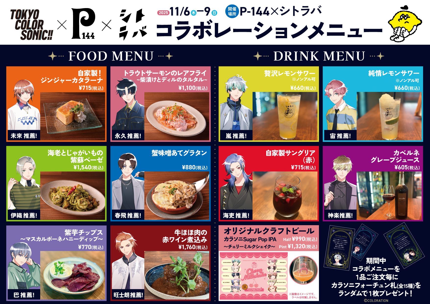 今年もキャラクターおすすめのメニューとカラソニ特別展示をご用意してお待ちしています♪期間中、コラボメニューを1品ご注文ごとにカラソニフォーチュン札(全15種)をランダムで1枚プレゼント!